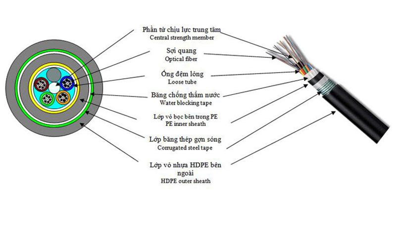- Cáp quang làm việc trong nhiệt độ từ -30 đến 60 độ C